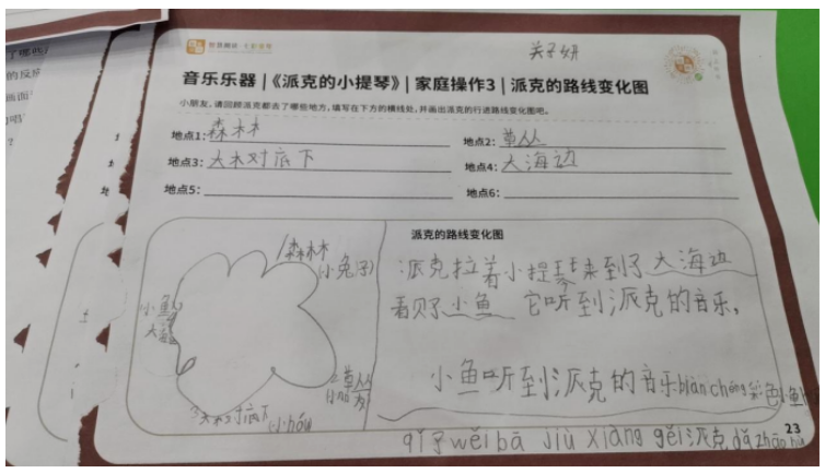 发布时间:2025年12月27日 浏览次数:456刚给一年级学生上完《派克的小提琴》绘本课,下课铃一响,孩子们就举着操作单兴冲冲地冲过来:“老师你看!听到派克音乐的小鱼,在摇晃尾巴跟我打招呼呢!”